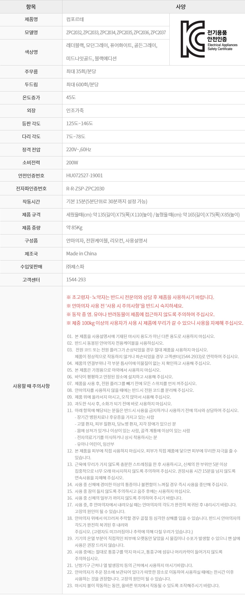 이미지 확대보기컴포르테(미드나잇골드) 안마의자 -ZPC2036-
